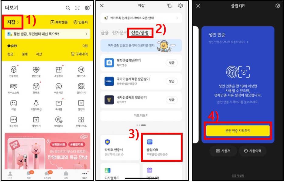 정부24, PASS앱으로 발급받는 '모바일 신분증'은 실물 신분증과 동일하게 어디에서든 사용 가능하지만, 카카오톡 '출입QR'은 사용할 수 있는 곳이 제한되어 있습니다. 발급 원하는 분들을 위해 방법 설명은 해드리겠습니다.
