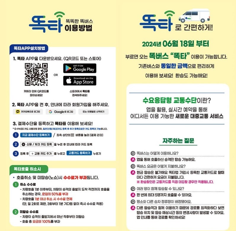 [똑타] 어플이 있어야만 똑버스를 이용할 수 있기 때문에 어플 설치는 필수입니다.