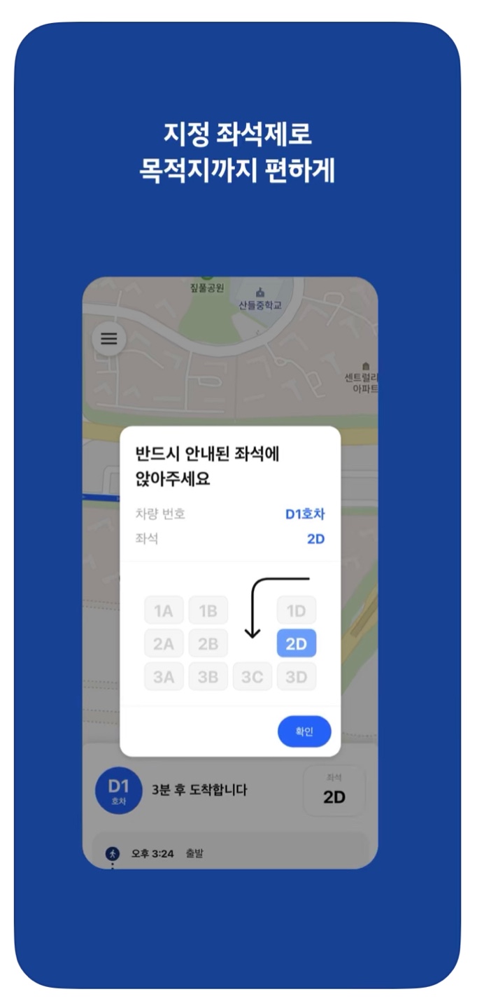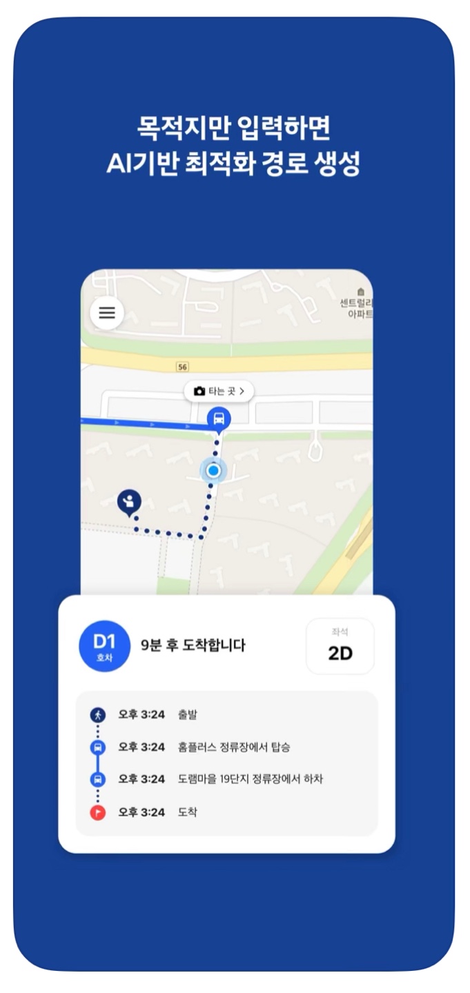 앱을 통해 출발지와 도착지를 입력하면 인공지능(AI)이 실시간으로 최적 노선을 만들어 운행되는데요.