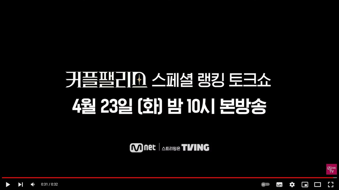 4/23(화) 밤 10시에 커플팰리스 화제 출연진들과 함께 하는 스페셜 랭킹 토크쇼를 방송한다고 합니다.